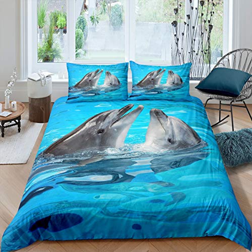 houzz Erosebridal Kid Dolphin Bedding Set, Cute Dolphin Duvet Cover, Marine Life Comforter Cover, Blue Wave Decor Lightweight Soft Polyester Quilt Cover 1 Duvet Cover with 2 Pillow Cases Queen Size